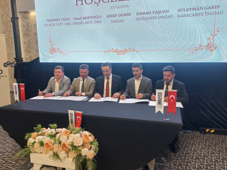 İnegöl Müteahhitler Derneği Başkanı, Yusuf Şehitoğlu, Bilecik Müteahhitler Derneği Başkanı Mehmet Yağız, İMSİAD Yenişehir Başkanı Emrah Taşcan ve İMSİAD Karacabey Başkanı Süleyman Garip'in de katılımıyla İMSİFED'in kuruluşu imzalandı.