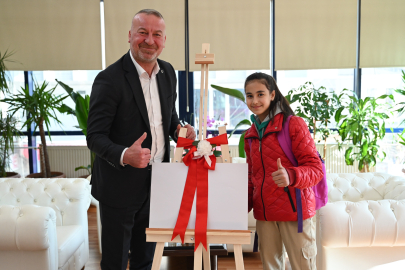 Şehit Serkan Şahin Ortaokulu’nun 7. sınıf öğrencisi Hazal Emergen, 23 Nisan Ulusal Egemenlik ve Çocuk Bayramı kapsamında düzenlenen resim yarışmasında ilçe birinciliğini kazandı. Başarılı öğrencinin gururu, ilçede büyük bir sevinçle karşılandı. Belediye Başkanı Fatih Karabatı, Hazal Emergen’i makamında ağırlayarak bu anlamlı başarısından dolayı kendisini tebrik etti. Başarılı öğrenciyi makamında misafir eden Belediye Başkanı Fatih Karabatı, Hazal’a bu anlamlı başarısından dolayı bir resim şövalesi hediye etti.