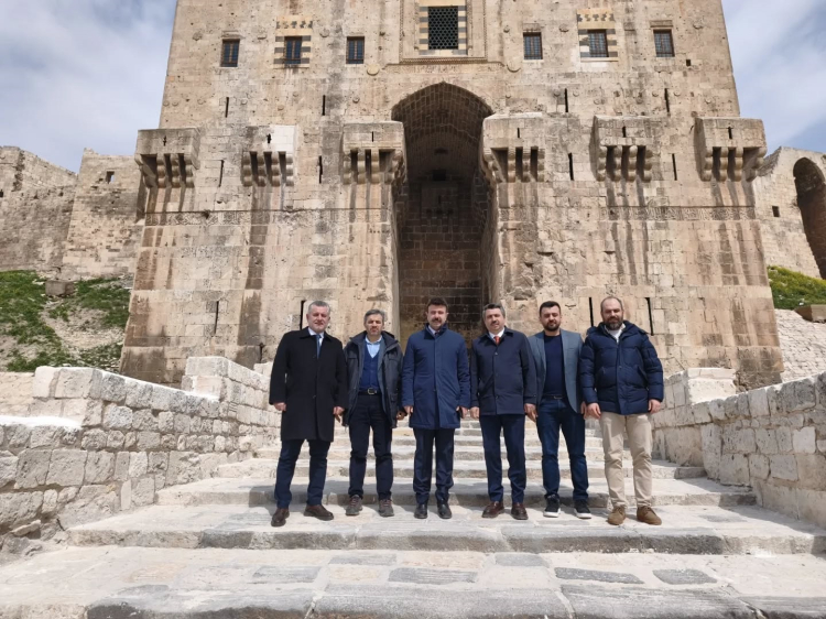 Bölgedeki temasları kapsamında Halep Başkonsolosumuz Muammer Hakan Cengiz’i, TİKA Halep Ofisi’ni, Suriye Arap Cumhuriyeti El Bab Kaymakamı Dr. Hussein Al-Shehabi’yi de ziyaret eden başkan Yılmaz ve beraberindekiler, Halep Kalesi, Emevi Camii ve Halep çarşısında da incelemelerde bulundular. Ülkede yıllarca süren savaşın ve çatışmaların etkisinin hala devam ettiğini aktaran Başkan Yılmaz, “Kadim şehir Halep’te, tarihin derin izleriyle savaşın bıraktığı hatıraları bir arada görmek insanın yüreğine dokunuyor. Savaş döneminde şehrimizde büyüyen iki kardeşimizin Halep’te açtığı Bursa Kafe’ye tesadüf ettik. Ülkeler arasında kurulan dostluk köprülerinin, kardeşlik ve dayanışmamızın bir nişanesi olan Bursa Kafe’yi görmek yüreğimize bir nebze de olsa su serpti. Bu ziyaretlerimizi bize Türkiye’nin Türkiye’den daha büyük olduğunu bir kez daha gösterdi. Bizler her daim kardeşlerimizin yanında olmaya, gönül bağımızı ve dayanışmamızı büyütmeye devam edeceğiz” ifadelerini kullandı.