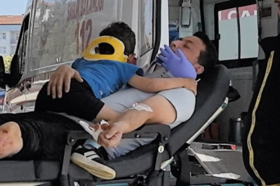 Bursa'nın İnegöl ilçesinde otomobilin çarptığı motosikletteki 2'si çocuk 3 kişi yaralandı. Sağlık ekipleri, müdahalenin ardından yaralı çocuğa muayene eldiveniyle balon yapıp verdi.