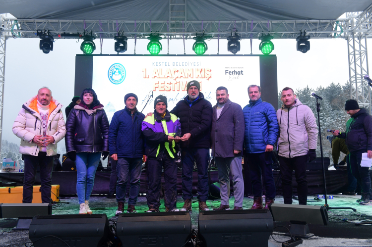 Kestel Belediyesi’nin 1’inci Alaçam Kar Festivali’nde çocukların kar keyfine anne ve babalar da ortak olurken kar festivali kapsamında dev sahnede müzikler çalındı danslar edildi… Kestel Belediyesi Halk Dansları Topluluğu karın üzerinde halk oyunlarını icra ederek izleyenlerden büyük alkış aldı… Alaçam Kar Festivali kapsamındaki yarışmalara katılan çocuklara madalyalar sahnede takdim edildi…