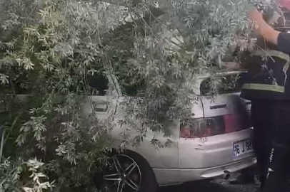 Kökünden sökülen ağaç otomobilin üzerine devrildi