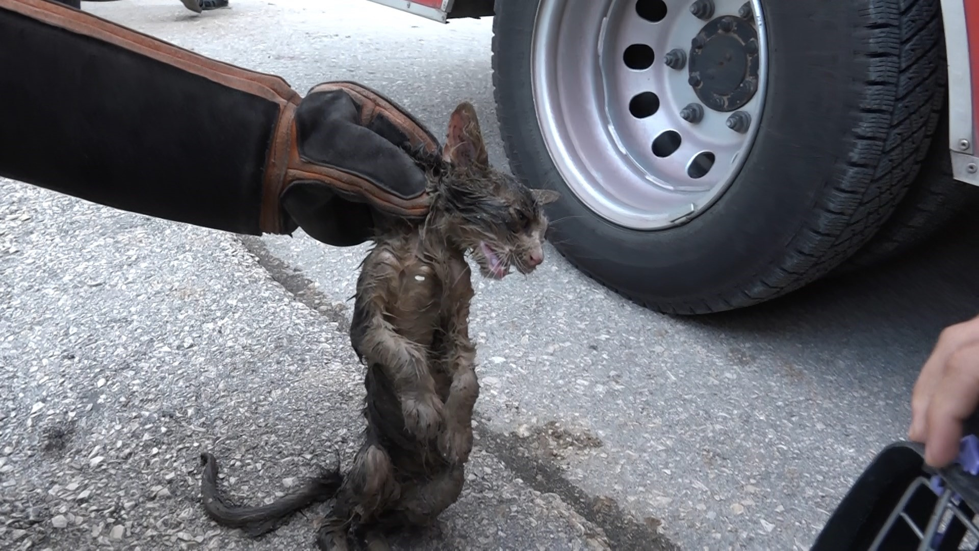 Merkez Osmangazi ilçesi Hüdavendigar Mahallesi 4. Armut sokaktan geçenler, derinden kedi sesinin geldiğini fark etti. 4 katlı Binanı çatısındaki gider borusundan aşağı düşen kedi, borunun içerisinde sıkıştı. Ev sahipleri tarafından giderin üstü açılırken, kediyi kurtarmak için santim santim kazdılar. Kedinin kendisi çıkması için borunun ucuna salam koyulurken, tepki vermesi ve kendi çıkması için aralıklarla kedi sesi dinletildi. Olay yerine gelen Bursa Büyükşehir Belediyesi İtfaiye Daire Başkanlığı Arama Kurtarma ekipleri de, termal kamera ve sistemleriyle kedinin nerede olduğunu tespit etti.
