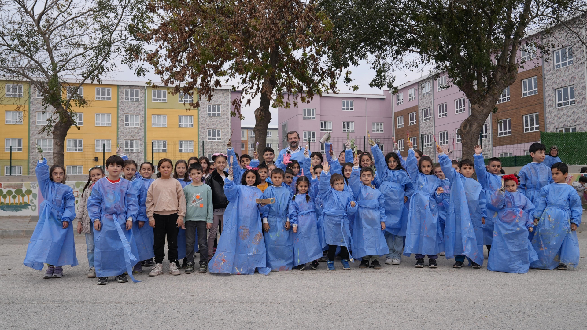 Gürsulu çocukların duvar boyama etkinliklerine en büyük destek Gürsu Belediye Başkanı Mustafa Işık’tan geldi. Başkan Işık, eline fırçayı aldığı gibi çocuklarla beraber duvar boyadı.