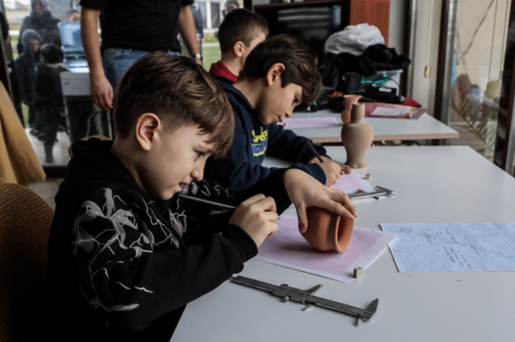Kazı alanından çıkardıkları buluntuları kumpas yardımıyla ölçerek milimetrik kâğıt üzerine çizimlerini yapan öğrenciler, arkeolojinin yalnızca kazıdan ibaret olmadığını, ölçüm, belgeleme ve yorumlama süreçlerinin de bilimsel çalışmanın önemli bir parçası olduğunu öğrenmiş oldu.