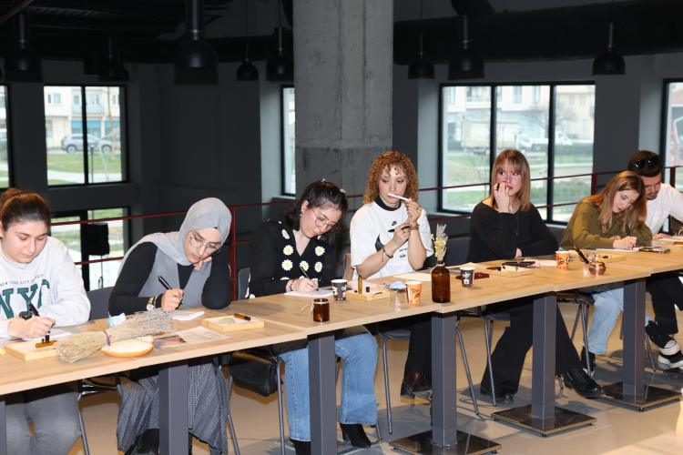 Etkinlikte; kimyasal duyulara giriş, tat ve koku duyusu arasındaki ilişki, koku belleği, parfümün tarihsel gelişimi, aromaterapi ve uçucu yağların etkileri gibi konular detaylıca konuşuldu. Nilüfer Belediye Başkan Yardımcısı Okan Şahin de atölyeyi ziyaret ederek katılımcıların çalışmalarını inceledi.
