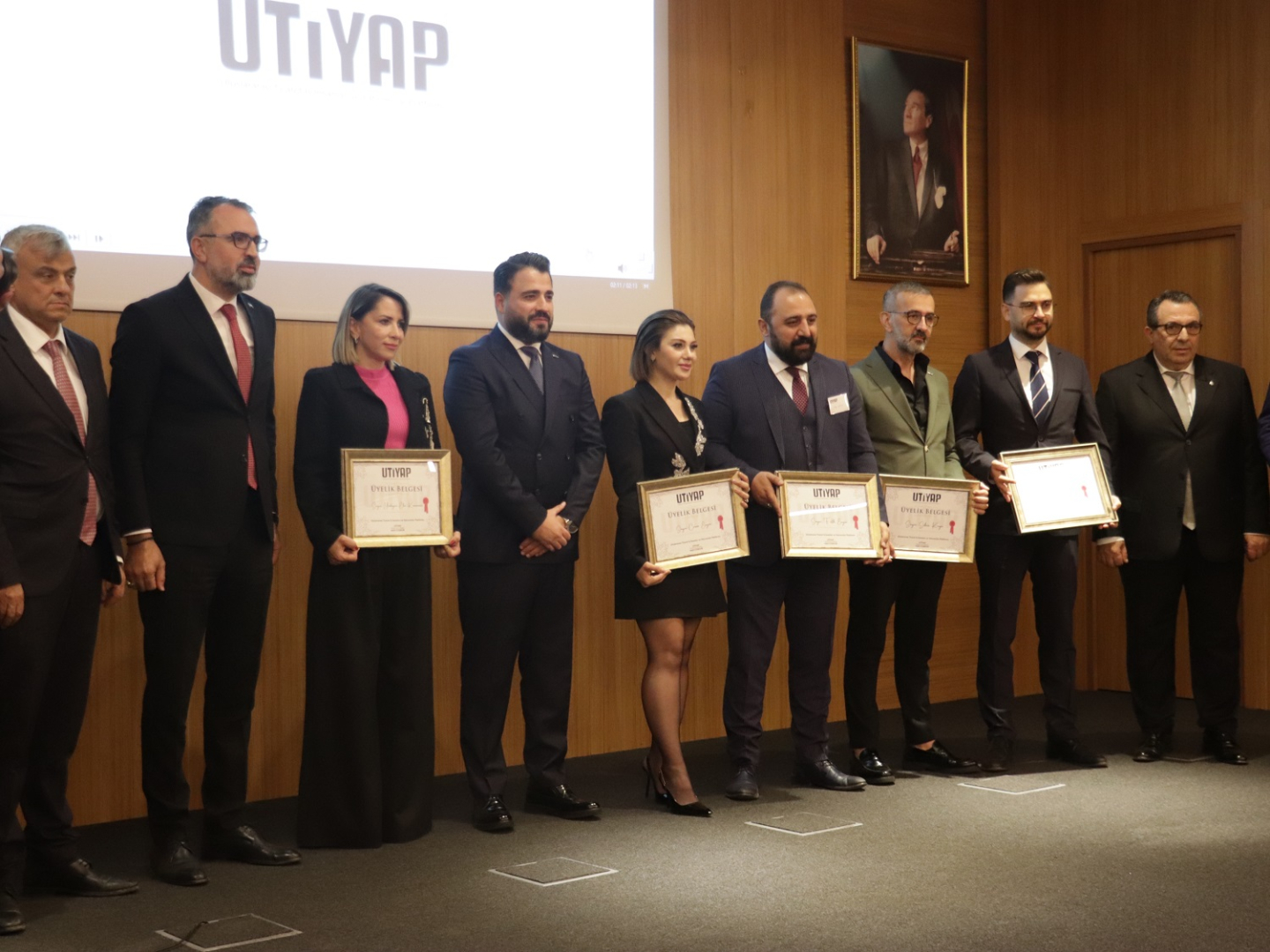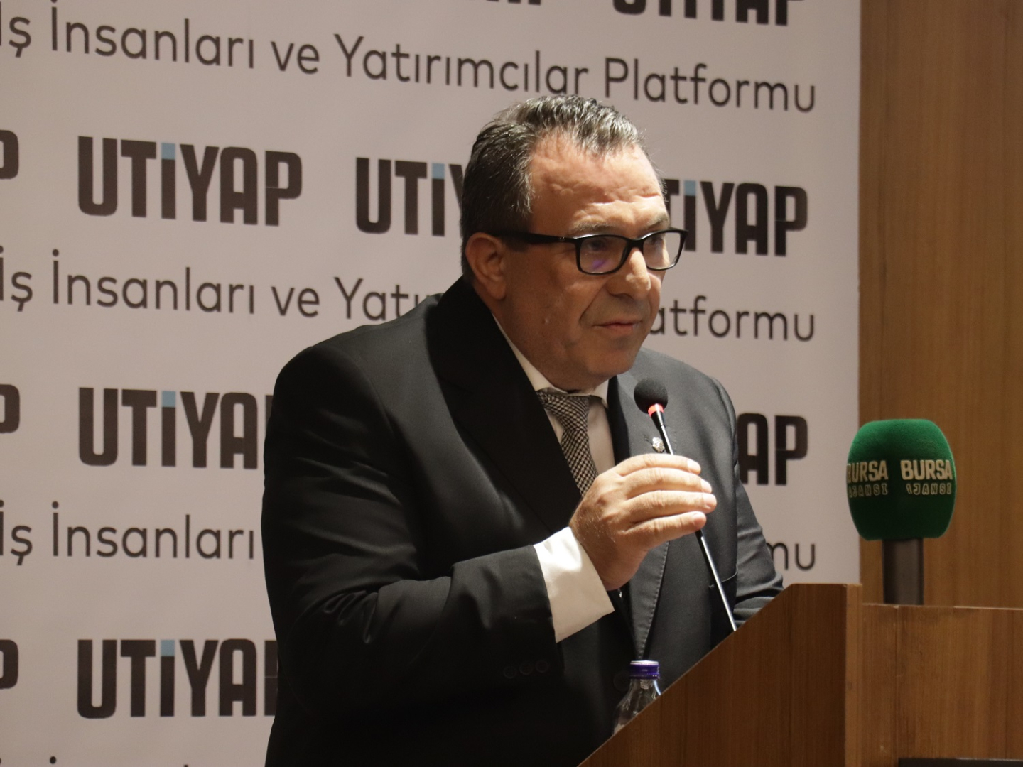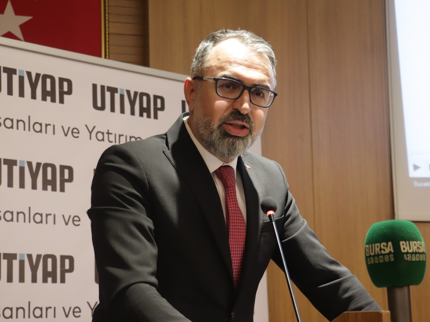 Uluslararası Ticaret İş İnsanları ve Yatırımcılar Derneği (UTİYAP) tarafından NOSAB Yalçın Aras Konferans Salonu’nda düzenlenen “Durgunluk Dönemi İçin Stratejiler” konulu programa Kestel Belediye Başkanı Ferhat Erol, NOSAB Yönetim Kurulu Başkanı Erol Gülmez, UTİYAP Başkanı Halil Coşkun, Uludağ Gümrük ve Dış Ticaret Bölge Müdürü Hüseyin Şanverdi, ALB Yatırım Başekonomisti ve Uludağ Üniversitesi Öğretim Üyesi Doç. Dr. Filiz Eryılmaz ve ALB Yatırım Şubeler Direktörü Ahmet Cevdet Tokkuzu katıldı.