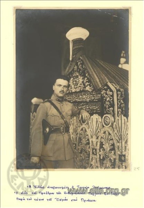Arslan, 1920'nin sonlarında Yunan komutan Sofoklis Venizelos'un Osman Gazi Türbesi'ni ziyaretine de değinerek, bu ziyaretin detaylarının net olmadığını, ancak bir fotoğrafın bu ziyaretten günümüze ulaştığını belirtti. Arslan, "Fotoğrafta Venizelos'un gayet samimi, hatta saygısız bir şekilde, kolunu türbenin parmaklıklarına dayadığı ve ayağını da kenara koyarak poz verdiği görülmektedir. Bu fotoğrafı nişanlısına ve Daily Mail Gazetesi muhabirine göndermiştir. Bu fotoğraf ve altına düşülen 'Yunanistan yeniden doğuyor, Türkiye ölüyor' notu ile Türklere karşı psikolojik bir üstünlük sağlamayı hedeflemekteydiler. Bu fotoğraf, Osman Gazi'nin Bursa'daki Bizans hakimiyetine son veren Türk hükümdarı olması sebebiyle özellikle seçilmiş ve kasıtlı olarak çekilmiş bir karedir" dedi.