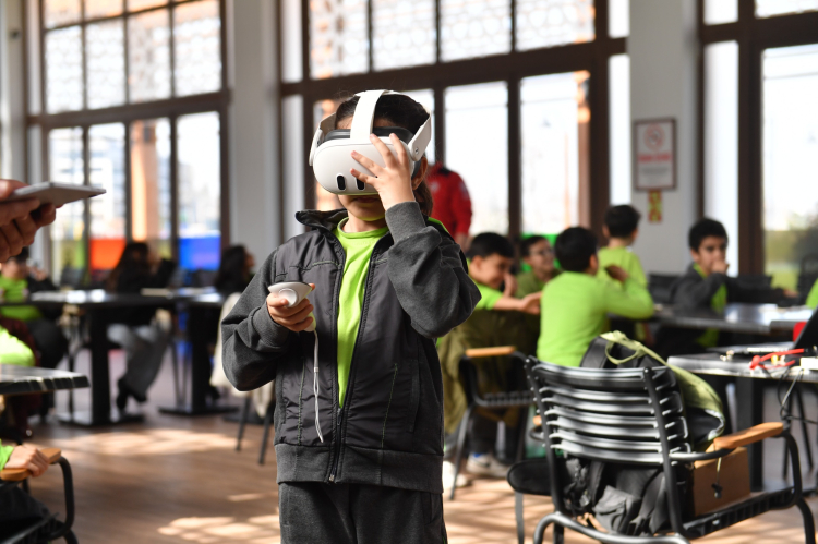 İsmail Hakkı Tonguç Kütüphanesi’nde düzenlenen eğitim programında öğrenciler, afet bilincini hem teorik hem de VR teknolojisiyle uygulamalı olarak öğrenerek olası risklere karşı bilinç kazandı.