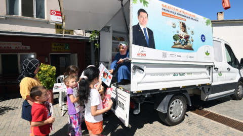 Konuşmaların ardından Gezici Kütüphane'nin içerisine giren Başkan Aydın, kütüphanenin raflarından seçtiği kitabı, törene katılan bir çocuğa verdi.