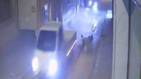 Bursa'nın İnegöl ilçesinde 17 yaşındaki sürücünün kullandığı kamyonet, kaldırımda yürüyen trafik polisine çarpıp 20 metre sürükledi. Sürücü aracıyla olay yerinden kaçarken yaralı polis ambulansla İnegöl Devlet Hastanesine kaldırıldı. Kaza anı bir iş yerinin güvenlik kamerasına saniye saniye yansıdı.