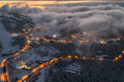 Kar kalınlığının bir metreye ulaştığı Uludağ'da hafta sonu yoğunluğu yaşanıyor. Milli parklar girişinden itibaren tedbir alan jandarma kar lastiği olmayan araçları yukarıya göndermiyor. Buzlanmanın yaşandığı bazı bölgelerde kayıp yolu kapatan araçlar trafiğe sebep olurken yolun açılması için diğer sürücüler büyük uğraş veriyor. Dün gece sis bulutları arasındaki Uludağ'ın muhteşem dron görüntüsü izleyenleri adeta büyüledi.