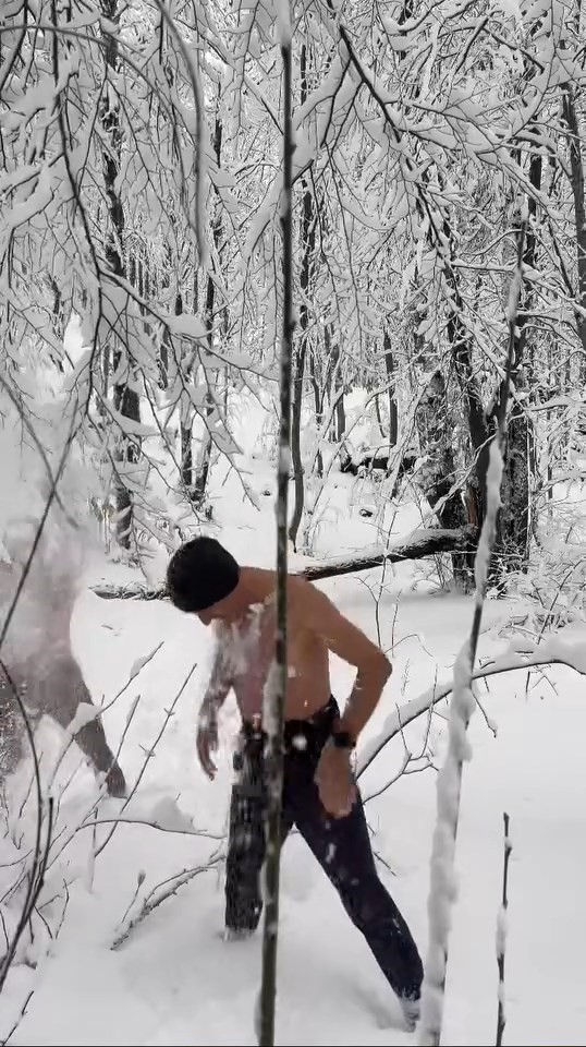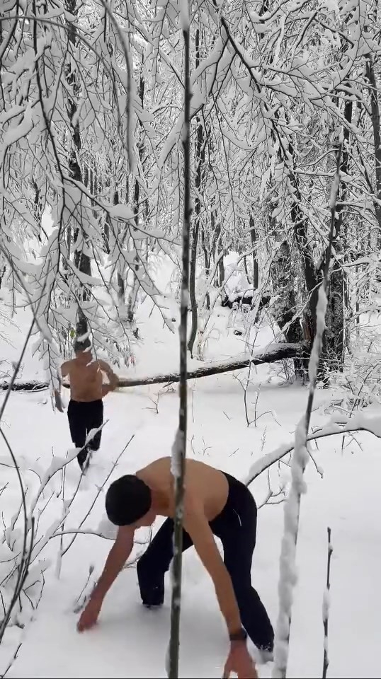 Bursa'da kar yağışı etkili oldu. Uludağ'ın eteklerinin kar tutması sebebiyle ormanlık alanda iki kafadar eğlenceyi zirveye taşıdı. Hava sıcaklığının eksi dereceleri gördüğü Kaplıkaya'da iki arkadaş, yarı çıplak bir şekilde karın tadını çıkardı. İki kafadar yarı çıplak şekilde kara gömülürken, koşarak da spor yaptı.