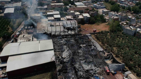 Bursa’da bir fabrikada başlayan ve kısa sürede 3 fabrikaya daha sıçrayan yangın kontrol altına alındı. Soğutma çalışmalarının sürdüğü fabrikalar havadan drone ile görüntülendi.