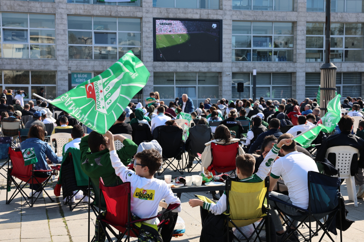 Somaspor ile oynanan karşılaşmaya yoğun ilgi gösteren Bursasporlu taraftarlar, meydanı adeta bir stadyum atmosferine çevirdi. Maç boyunca heyecanın düşmediği alanda, atılan her gol sonrası coşku tavan yaptı. Bitiş düdüğünün ardından bayram yerine dönen meydanda, bayraklar, marşlar ve tezahüratlar eşliğinde şampiyonluk sevinci yaşandı.