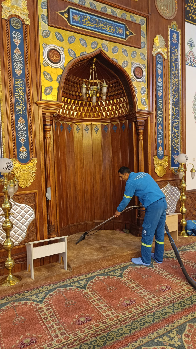 Temizlik İşleri Müdürlüğü ekipleri tarafından yürütülen çalışmalar kapsamında cami içleri ve çevrelerinin temizliği titizlikle yapılıyor. Belediye ekipleri, cami içlerinde genel temizlik yaparken cami bahçelerinde ise çöp toplama, süpürme ve yıkama işlemleri gerçekleştiriyor. Ayrıca oturma alanları, şadırvanlar ve abdesthaneler de detaylı bir şekilde dezenfekte ediliyor.