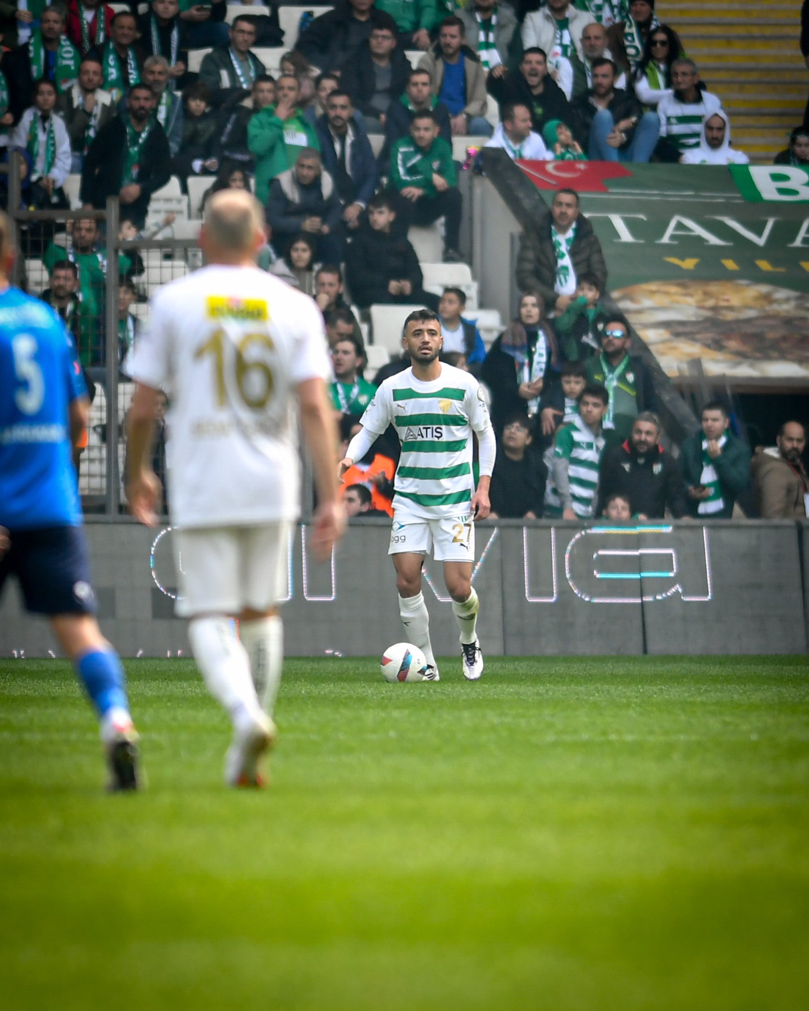 36' UZAKTAN VURDU! Bursaspor bir kez daha gole yaklaştı. Ceza sahası çizgisine yakın bir noktadan Mustafa Genç plase vuruşunu yaptı, top çok az farkla direğin üzerinden dışarı çıktı.