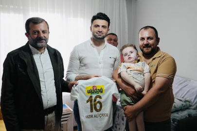 Bursaspor Başkanı Enes Çelik, Gürsu'da tedavi süreci devam eden minik yeşil beyazlı taraftar Hızır Ali Çakır'ı ziyaret etti. Başkan Çelik'e, Gürsu Belediye Başkanı Mustafa Işık da eşlik etti.