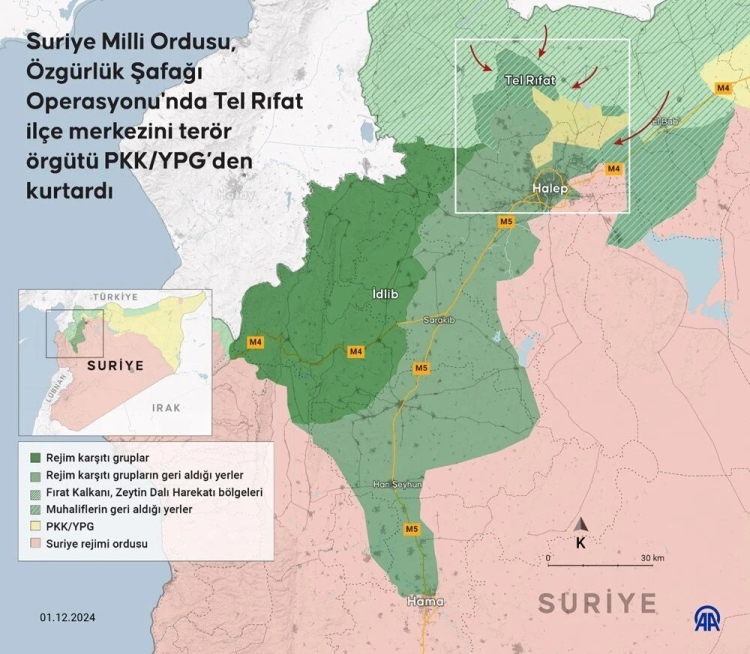 Suriye'de Heyet Tahrir Eş-Şam (HTŞ) örgütünün başını çektiği muhalif gruplar, Beşar Esad güçlerine karşı 28 Kasım'da büyük bir operasyon başlattı.