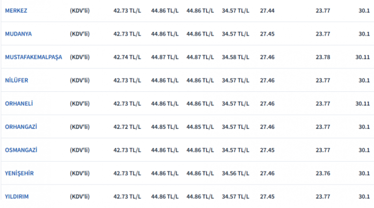 İstanbul'da motorin litre fiyatı 44.22 liradan satılıyor. Benzinin litresi ise ortalama 42.1 satılıyor. Benzin Ankara'da 42 lira 45 kuruşa, İzmir'de 42 lira 85 kuruşa satılıyor.