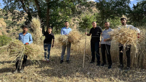 Hasat yapılan tarlalarda incelemede bulunan Yüksekova Ziraat Odası Başkanı Perviz Geçirgen, çiftçilere yardımda bulunarak makineyle buğday hasadı gerçekleştirdi. Bereketli bir sene olduğunu belirten Geçirgen, “Ortaç köyümüzün Gümüşlü mezrasını ziyaret ettik. Çiftçilerimizin büyük emekle hasadını yaptığı buğday tarlasına geldik. Engebeli bir bölge olmasına rağmen çiftçilerimiz tüm zorluklara rağmen hasadını gerçekleştiriyor. Şimdiden tüm çiftçilerimize kolay gelsin” dedi.