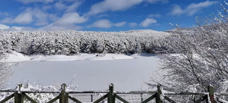 Dört mevsim ayrı güzelliğe bürünen Çamlık’taki kar örtüsü, eşsiz manzarasıyla görenleri adeta büyüledi. Göletin, ağaçların üzerindeki kar görüntüleri doğanın en sakinleştirici ve huzur verici anlarını gözler önüne serdi.