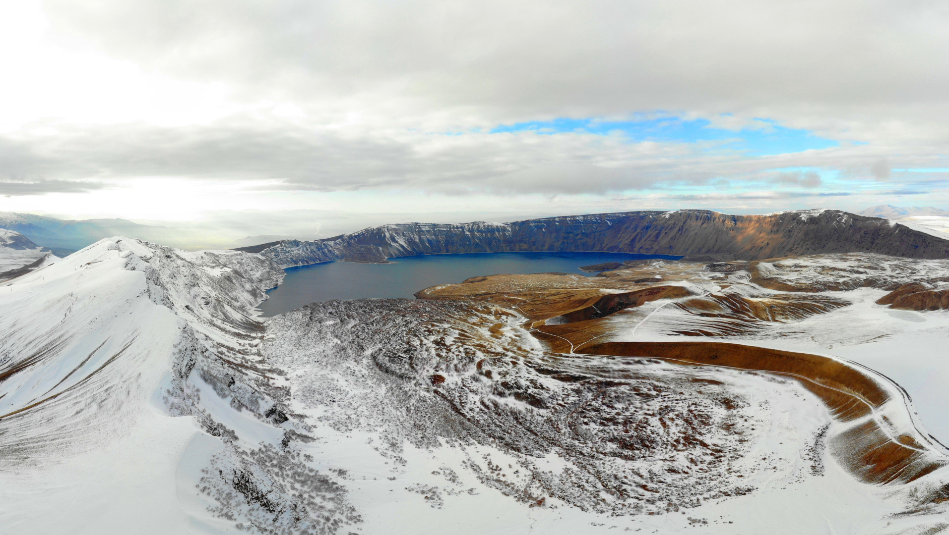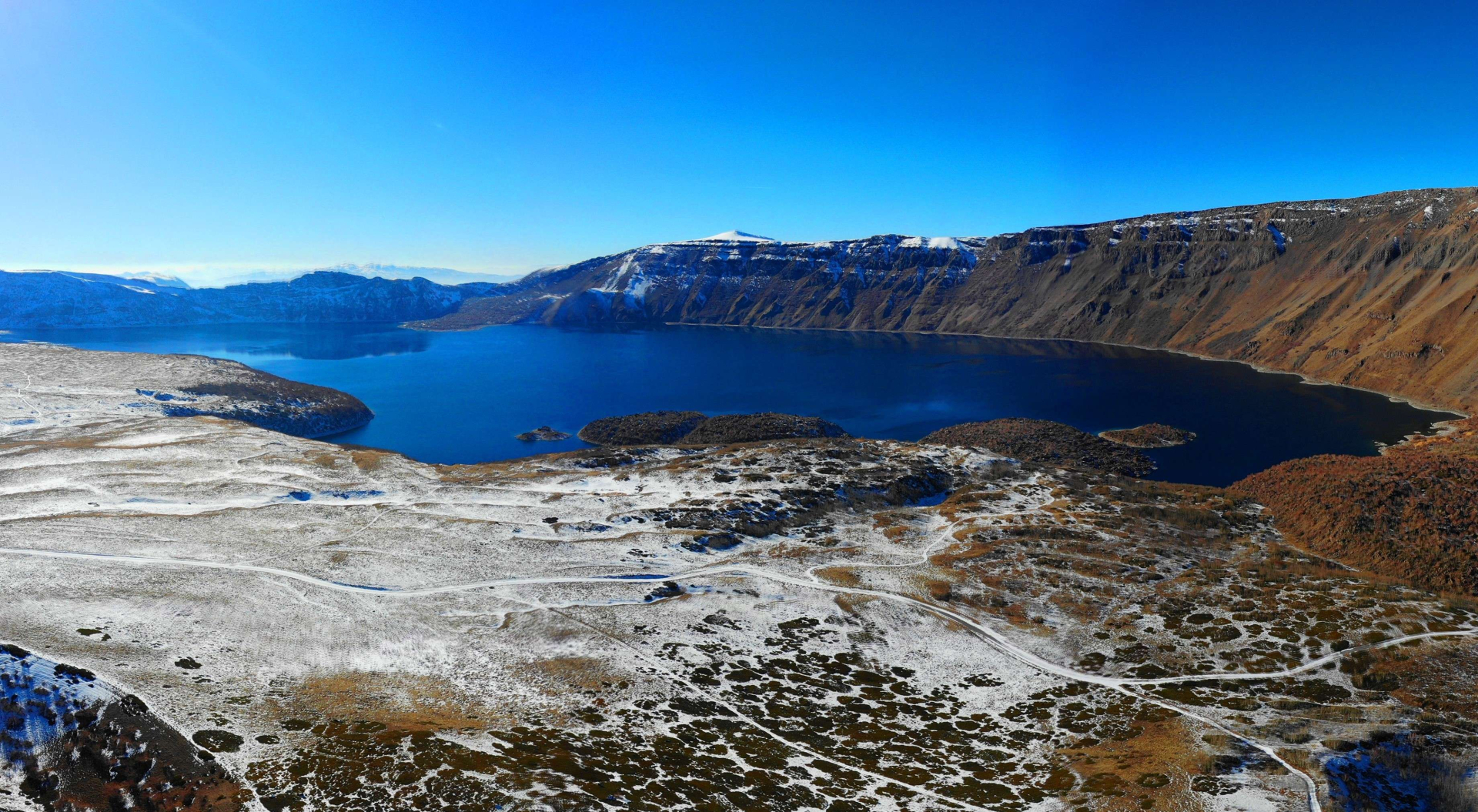 Beyaz örtüyle kaplanan ağaçlar, krater gölünün çevresini saran dağlar ve geniş düzlükler, kış mevsiminin tüm ihtişamını gözler önüne seriyor.