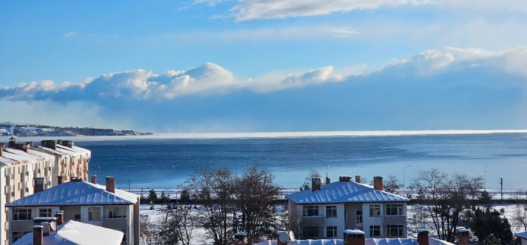 Tatvan ilçesinde bir hafta boyunca aralıklarla etkili olan kar yağışı ve dondurucu soğukların ardından güneş yüzünü gösterdi. Havanın açmasıyla birlikte Van Gölü üzerinde yoğun buharlaşma meydana geldi.