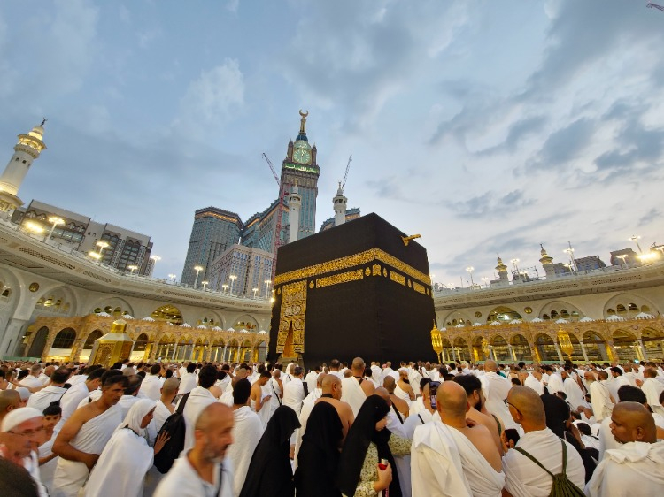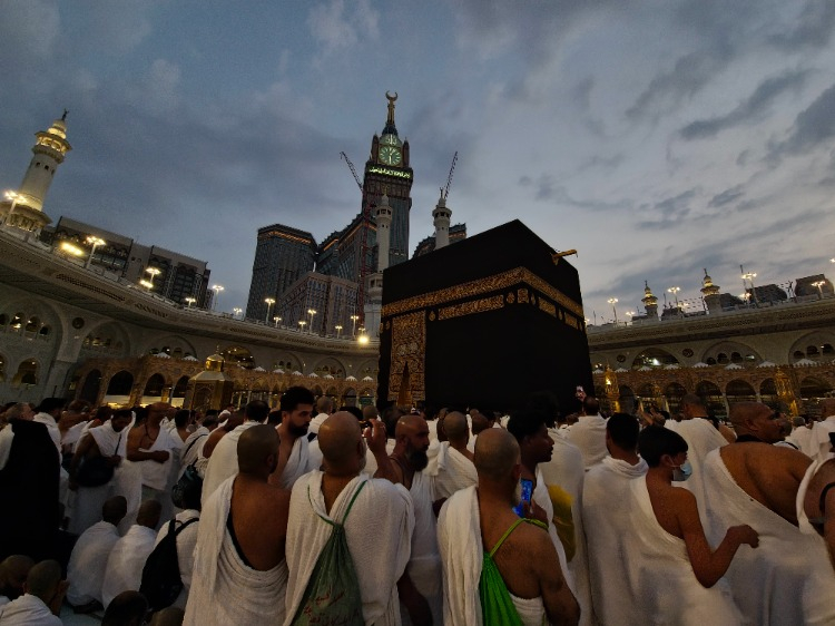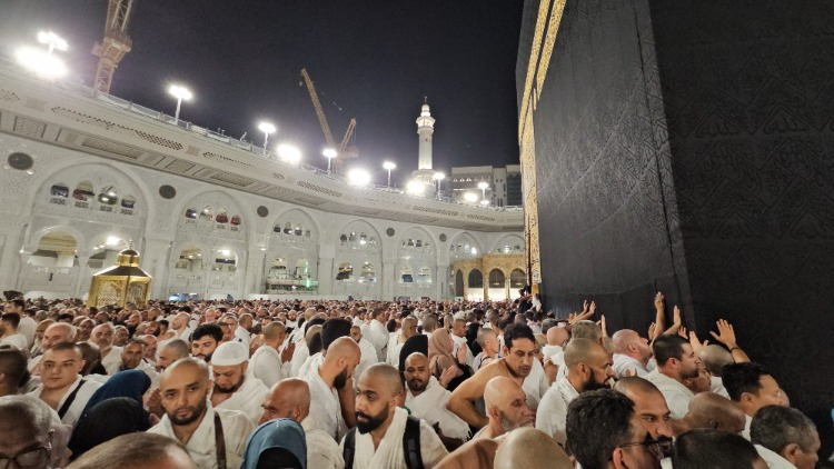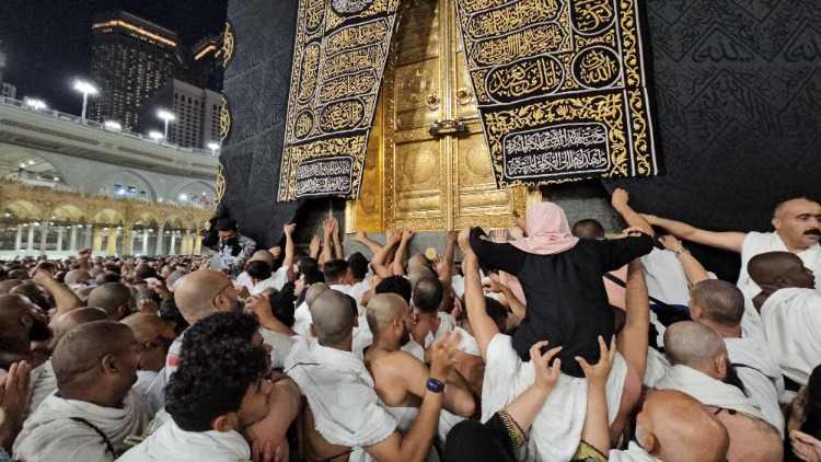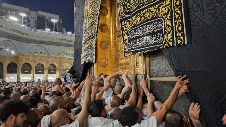 Yeryüzünde yapılan ilk mescit olan Kabe'ye ulaşan Müslümanlar, Hacerül Esved'e ve Kabe'ye dokunmak için yoğun çaba sarf ediyor.