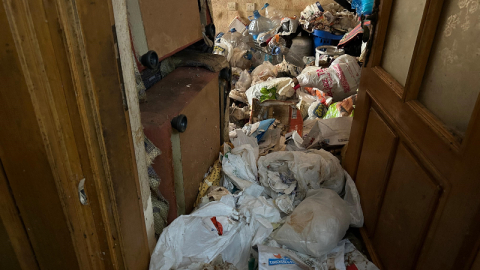 İzmir’in Karşıyaka ilçesinde bir çift, 25 yıl boyunca evlerinde çöp biriktirmiş. Belediye yetkilileri, 4 gün boyunca yaptıkları çalışmalar ile evden 10 kamyon çöp çıkardı.