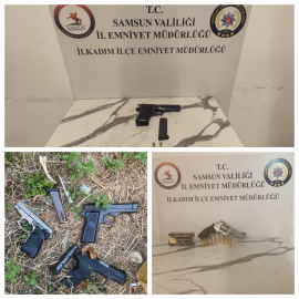 İlkadım İlçe Emniyet Müdürlüğü ekiplerince asayişe müessir olayların önlenmesine yönelik yapılan çalışmalarda 4 ruhsatsız tabanca, 1 kurusıkı tabanca ve 21 adet fişek ele geçirildi. 5 şahsa adli işlem başlatıldı.