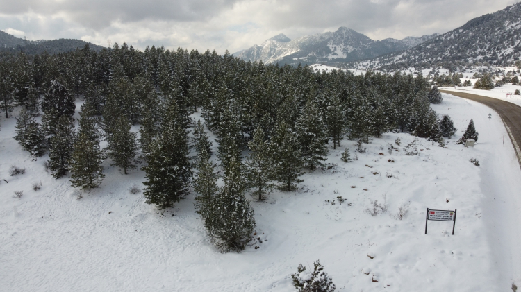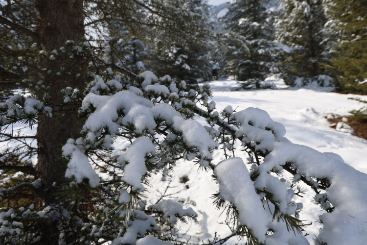 Adana'da yoğun kar yağışı nedeniyle kapanan yolların açılması için çalışma başlatılırken, ormanlık alanda da görsel şölen oluştu.