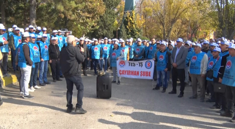 Çayırhan Termik Santrali ve maden işletmeleri çalışanları, bölgede yaptıkları yürüyüşle termik santral ve maden sahalarının özelleştirilmesine tepkilerini dile getirdi. MADEN-İŞ Sendikası Genel Başkanı Nurettin Akçul, yaptığı açıklamada Türkiye ekonomisi ve madencilik sektörü için kritik öneme sahip Çayırhan Termik Santrali ve maden sahalarının özelleştirilmesi kararının nelere mal olacağını anlatmak ve satışa dur demek için bir araya geldiklerini belirtti. Akçul, “Bu maden işletmesi uzun yıllardır devletin güvenilir eli altında faaliyet göstermektedir. Bu faaliyetlerden de binlerce kişi ekmek yemektedir. Yüzlerce maden emekçisinin bu topraklarda alın teri, madenin her taşında, her kömür parçasında emeği vardır. Bu maden aynı zamanda ülkemizin ortak zenginliğidir, halkımızın malıdır. Ancak bugün bu madenin kapısına özelleştirme adı altında kilit vurulmak istenmektedir. Net olarak ifade etmek istiyorum, bunun adı özelleştirme değil, varlık satışıdır. Ülkemizin geleceğini satmaktır. Emekçilerin ve bu bölgede yaşayan her insanın ekmeğiyle oynamak demektir” dedi.