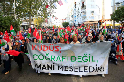İsrail’in 7 Ekim 2023 tarihinde başlattığı saldırı ve işgalin birinci yıldönümünde binlerce Antalyalı, ‘Filistin’e Destek Yürüyüşü’nde bir araya geldi. Aydın Kanza Parkı’nda ellerindeki Türkiye ve Filistin bayrakları ile toplanan vatandaşlar, tekbir ve sloganlarla Cumhuriyet Meydanı’na kadar yürüdü. Grup adına basın açıklaması yapan Antalya Kudüs Platformu Başkanı Mustafa Erduran, Yahudilerin İsrail’in kuruluş sürecinde Filistin topraklarının yüzde 5,6’sına sahipken BM tarafından 1948 yılında Filistin topraklarının yüzde 56’sının gasp edilerek İsrail’e verildiğini belirtti. 1897 yılında temeli atılan işgalin hedefinin Arz-ı Mevud olarak ifade edilen tüm coğrafyayı işgal etmek olduğunu söyleyen Erduran, “Bugün İsrail, İslam dünyasının kalbine saplanmış gayrimeşru bir işgal yönetimidir. Yüz yıldır belirli aralıklarla devam eden vahşi katliam ve işgal eylemleri nedeniyle sabıkası soykırımlarla dolu olan İsrail, özellikle bir yıldan beri Filistin’de soykırım suçunu en vahşi şekilde işlemektedir. Kesintisiz devam eden saldırılar sonucu on binlerce çocuk, kadın, yaşlı, hasta, engelli ve yüzlerce gazeteci, sağlık çalışanı, insani yardım çalışanı katledildi. İsrail’in terörü karşısında BM ve AB gibi uluslararası örgütler engelleyici bir rol üstlenmedikleri gibi İsrail’i koruyup kollamaktadırlar” ifadelerini kullandı.