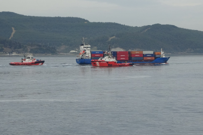 Çanakkale Boğazı’nda makine arızası yapan konteyner gemisi, yedeklenerek çekildi