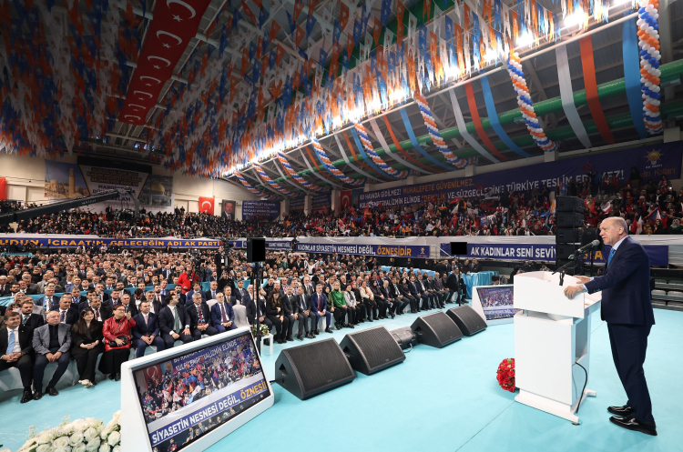 Hassas bir dönemden, çok zor bir kavşaktan döndüklerini belirten Cumhurbaşkanı Erdoğan, "60-70 yılın en büyük kırılmalarını yaşıyoruz. Bu fırtınalı sularda Türkiye'nin kılına zarar gelmemesi için büyük bir dikkat gösteriyoruz. Atacağımız adımların uzun vadeli sonuçlarını hesaplıyoruz. Bu güne kadar nemelazımcılık yapmadık şimdi de yapmıyoruz. 910 kilometre uzunluğunda sınırımızın olduğu Suriye ile ilk günden beri hep yakından ilgilendik. Tüm dünyanın sırtını döndüğü 5 milyon Surileyi kardeşimizi bu topraklarda misafir ettik. Biz ensarız onlar muhacir dedik. CHP gelir gelmez sizi tekrar Suriye'ye süreceğiz diyordu. Biz paylaşmanın bereketine inandık. 13 yıl boyunca ilkeli, vicdanlı davranarak millet ve ülke olarak son asrın en çetin savaşını verdik. Ey batı siz ne yaptınız siz böyle bir kapı açtınız mı, hayır, ama biz açtık. 61 yıllık karanlığın ardından Suriye'de özgürlüğün şafağı sökmeye başlamıştır. Arap, Türkmen, Kürt, Sünni, Hiristiyan demeden Suriye halkının tamamı geleceklerine daha bir güvenle bakıyor. Ey CHP dikkat et biz bu kardeşlerimizi kovmadık isteyen dönebilir dedik. Türkiye'yi yalnız kalmakla suçlayanlar şimdi bunun ne kadar değerli bir yalnızlık olduğunu ikrar ediyor. Milletim şunu bilsin ki başka konularda da zaman bizi haklı çıkacaktır. Dış politikada ekonomide terörle mücadelede ve diğer kritik olaylarda biz haklı çıkacağız. Mazlumun yanında saf tuttukça inanıyorum ki Rabbim de milletimizin önünü açacaktır. 13 yıllık zorlu bir mücadelenin ardından 61 yıllık Baas rejimini deviren Suriyeli kardeşlerimin barışın, huzurun hakim olacağı bir Suriye inşa edeceğine inanıyorum. Suriye'nin yanında olmaya devam edeceğiz. Muhalefetin çapını görmek için sadece Suriye'ye bakmak yeterlidir. Bölgemizde olup bitenleri takip etmiyorlar. Belediyelerin rant kavgasına öyle kendilerini kaptırmışlar ki çevrelerinde olup bitenden haberleri yok. Düşünebiliyor musunuz Esad ülkesinden kaçtığı zaman ana muhalefet partisi genel başkanı çıkıp görüşme çağrısı yapıyor. CHP'den hiçbir mantıklı açıklama gelmedi. CHP yönetimi Şam'daki dostlarını bir gecede kaybetmenin şokunu hala atamadı. Eline mikrofon alan herkes konuşuyor ama ne söyledikleri belli değil. Özel'in ne söylediği hiç belli değil. Kulağına ne fısıldanıyorsa onu söylüyor. CHP'de genel başkan değişse de iş bilmezlik CHP geleneği olarak varlığını aynı şekilde devam ediyor. Gördüğümüz kadarıyla CHP seçmeni bay Kemali arar oldu. Önümüzdeki dönemde bunların cilaları daha fazla dökülecek. Kurdukları her cümlede makyajları daha da dökülecek" dedi.
