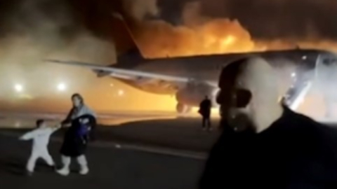 Yangın sırasındaki ilk anların görüntüleri ortaya çıktı. Alevli bir şekilde yanan uçağa ekiplerin müdahalesi ve yolcuların panik halinde uçaktan uzaklaşmaları görüntüler yansıdı.