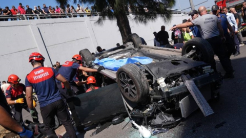 Trafik canavarı kanlı mesaisini sürdürüyor. İzmir'in Konak ilçesinde, hastanedeki yakınlarını ziyarete giden otomobil bariyeri aşıp köprülü kavşaktan düştü. Feci kazada araçtaki 5 kadından 3'ü öldü, 2'si ise yaralandı.
