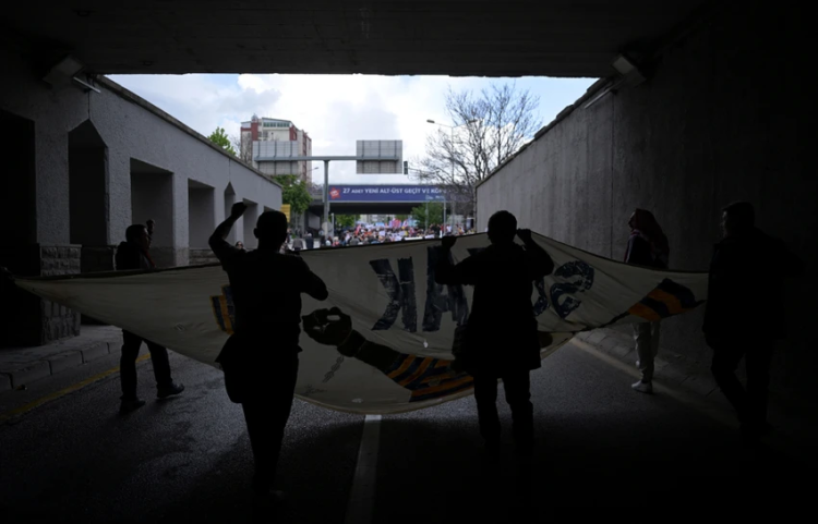 Devrimci İşçi Sendikaları Konfederasyonu'na (DİSK) bağlı Nakliyat-İş Sendikası üyeleri, 1 Mayıs Emek ve Dayanışma Günü dolayısıyla Saraçhane'de bir araya geldi.