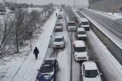 İstanbul'da etkili olan kar yağışı sürücülere zor anlar yaşatmaya başladı. Başakşehir Kayaşehir'de beyaza bürünen yolda araç sürücüleri ilerlemekte güçlük çekmeye başladı. Bazı araçlar yolda kaldı. Sürücülerin zorlu yolculuğu havadan dron ile görüntülendi.