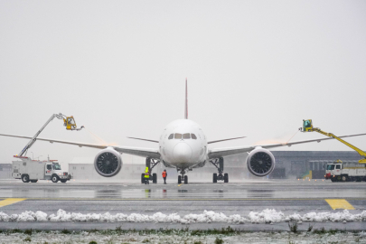 İGA İstanbul Havalimanı'nda uçaklar "de-icing" ve "anti-icing" adı verilen buz çözücü özel sıvılarla yıkanıyor. Havalimanında seferlerde herhangi bir aksama yaşanmıyor.