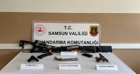 Edinilen bilgiye göre, Samsun’un Ayvacık ve Salıpazarı ilçelerinde jandarma ekipleri tarafından, kaçakçılık olaylarının önlenmesine yönelik yapılan araştırma neticesinde, ruhsatsız silah bulundurdukları tespit edilen şahıslara yönelik operasyon düzenlendi. Samsun İl Jandarma Komutanlığı Kaçakçılık ve Organize Suçlarla Mücadele (KOM) Şube Müdürlüğü, İstihbarat Şube Müdürlüğü, Ayvacık, Salıpazarı ve Terme İlçe Jandarma Komutanlığı ekipleri 8 farklı adreste eş zamanlı arama yaptı. Yapılan aramalarda; 1 adet tabanca, 1 adet kurusıkı tabanca, 3 adet ruhsatsız av tüfeği, 4 adet şarjör, 39 adet tabanca fişeği ve 622 gram patlayıcı madde ele geçirildi. Olayla ilgili soruşturma devam ediyor.