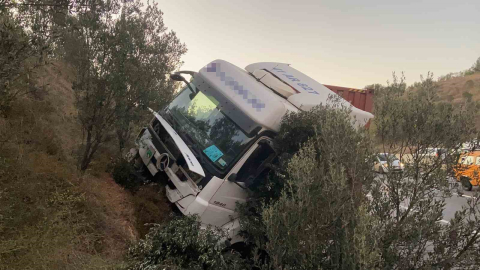 Kontrolden çıkan tır ağaçlık alana daldı, sürücü yaralandı