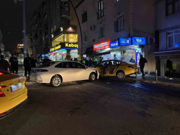 Küçükçekmece’de otomobilin taksiye çarptığı anlar kamerada: 3 yaralı