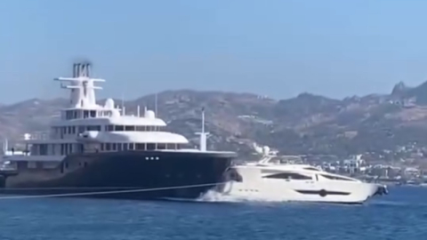 Muğla'nın Bodrum ilçesi Yalıkavak Mahallesi açıklarında, milyon dolarlık mega yat önünde bulunan motoryatı adeta ezip geçti. Maddi hasarın oluştuğu kaza anı an be an kaydedilirken, çarpışmanın gürültüsü sahile kadar ulaştı. Olayda can kaybı yaşanmaması teselli kaynağı oldu.