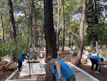 Muğla’da kamu hizmeti cezası alanlar şehit kabrini temizledi