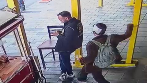 Polis memurunun bıçaklı bir şüpheli tarafından saldırıya uğradığı o anlar kameraya yansıdı. Görüntülerde saldırganın elindeki bıçakla polisin arkasından gelerek bıçakla saldırdığı ve sonrasında koşarak uzaklaştığı görülüyor.
