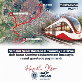 Karar hakkında açıklamalarda bulunan Başkan Halit Doğan, “Samsun Şehir Hastanesi’ne erişimi sağlamanın yanı sıra İlkadım ilçemizden de kuzey-güney ekseninde bir ulaşım hattına kavuşmuş olacağız. Bu şekilde Canik ve İlkadım ilçelerimizde alternatif ulaşım hatlarını hayata geçirmeyi ve hemşehrilerimizin konforlarını arttırmayı hedefliyoruz. Kamu Kampüsü alanına da tramvay bağlantısı sağlayacak projemizle, şehrimizin İlkadım ilçesindeki 33 km’lik alanı da tramvay hattına bağlamış olacağız. Samsun’umuzun ulaşım ağını, hızını ve hemşehrilerimizin konforunu daha ileri taşıyacak proje; Cumhurbaşkanımız Recep Tayyip Erdoğan’ın Samsun’a verdiği önemin ve merkezi hükümetle yerel yönetimlerin uyumlu çalışmalarının önemli bir örneğidir. Cumhurbaşkanımız Erdoğan’a, Ulaştırma ve Altyapı Bakanımız Abdulkadir Uraloğlu’na, TBMM Plan Bütçe Komisyonu Başkanı AK Parti Samsun Milletvekili Mehmet Muş’a genel başkan yardımcılarımıza, milletvekillerimize ve çalışma arkadaşlarımıza şükranlarımı arz ediyorum. Şehrimize ve hemşehrilerimize hayırlı olsun” dedi.