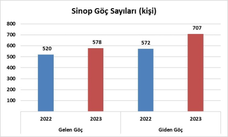 Sinop 2023 yılında yurt dışından aldığı göç sayısında 81 il arasında 68. sırada yer alırken, yurt dışına en fazla göç veren 72. il konumunda yer aldı.
