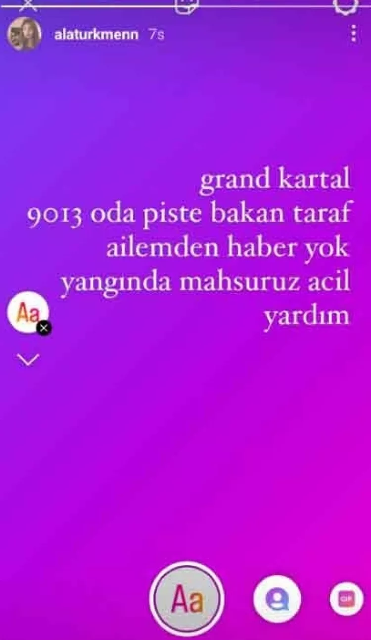 Sözcü yazarı Nedim Türkmen ve ailesinden haber alınamadığı bildirilirken acı haber geldi. Nedim Türkmen ile eşi Ayşe Neva, 18 yaşındaki kızı Ala Dora ve 22 yaşındaki oğlu Yüce Ata'nın yangında hayatını kaybettiği öğrenildi. Acı haberden önce Sözcü yazarı Nedim Türkmen'in kızı Alya Türkmen’in sosyal medya üzerinden yaptığı paylaşımda, "Grand Kartal 9013 oda, piste bakan taraf. Ailemden haber yok, yangında mahsuruz. Acil yardım!" ifadeleriyle yardım çağrısı yürekleri dağladı.